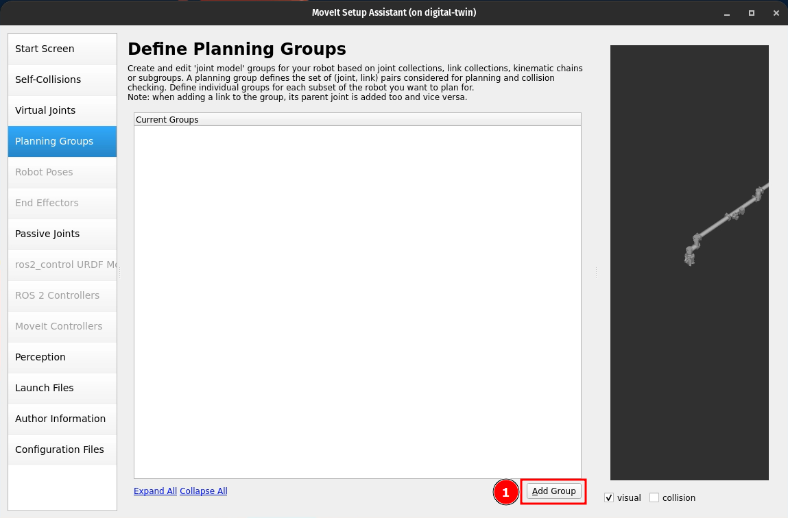 Now the Current Groups should be updated. Now setup Joints by following below: