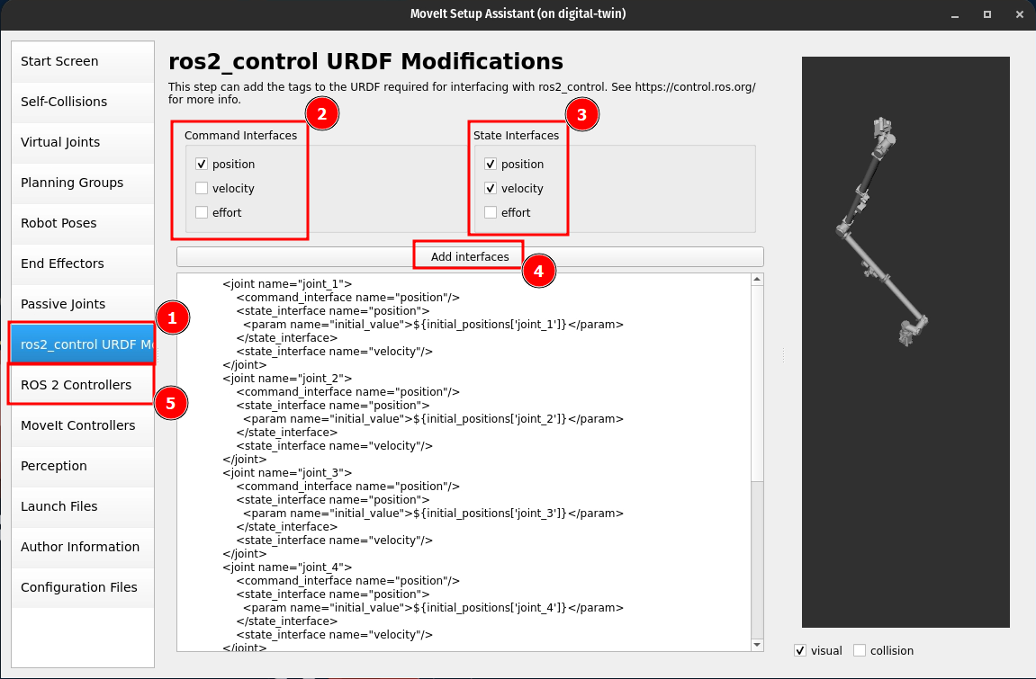 ⚠️Make sure to click on Add interfacesAs for ROS2 Controllers, Follow the Image Below: