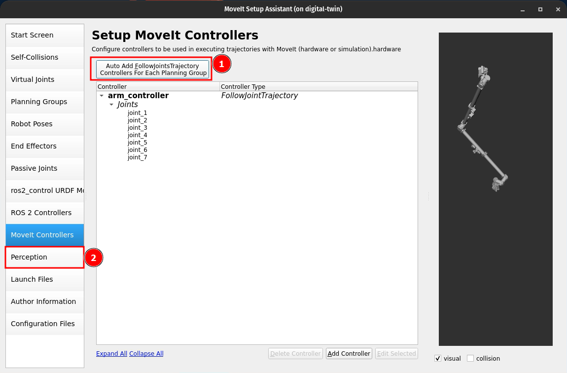 sudo apt install ros-jazzy-moveit ros-jazzy-ros2-control ros-jazzy-ros2-controllers -yMoveit Setup Assisstant