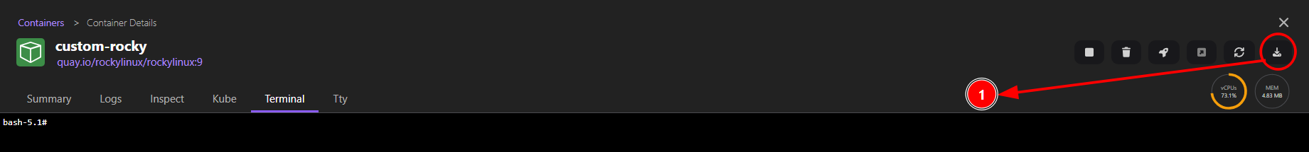 Still in Podman Desktop --> Containers --> Your New Container --> Terminal