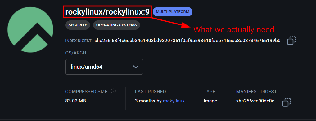 Well the best place to look for OCI images is DockerHub, and I obviously wanted Rocky Linux 9, and I found it here